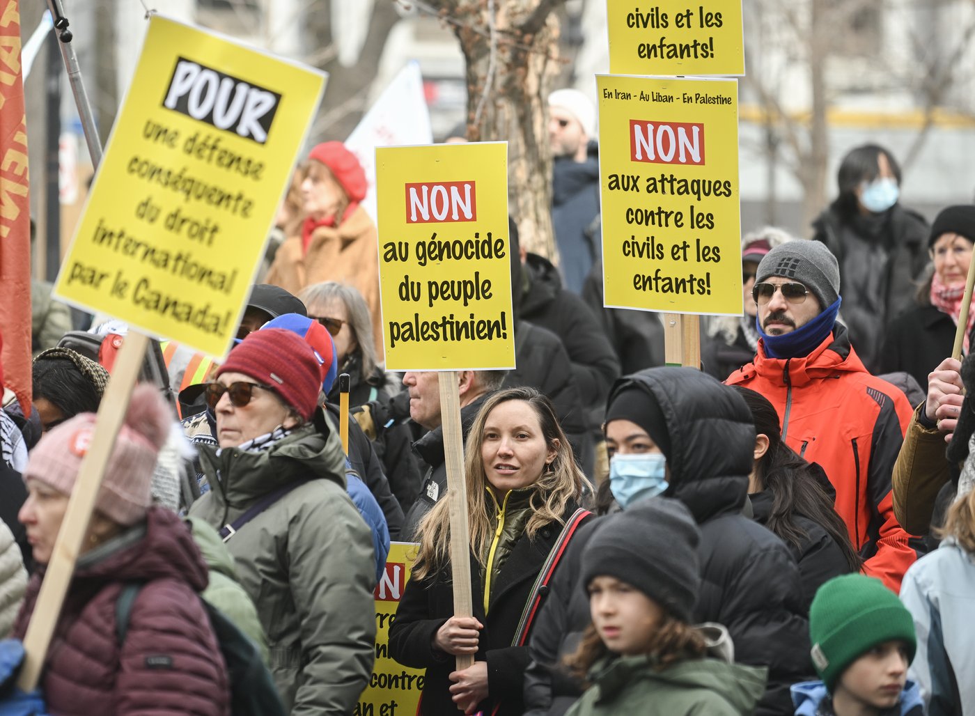 Des slogans comme «En Iran, la guerre, ça suffit» et «USA, casse toi, l’Iran n’est pas à toi» ont retenti samedi dans le centre-ville de Montréal alors que des centaines de manifestants se sont rassemblés afin de protester contre les actions des États-Unis et d’Israël.