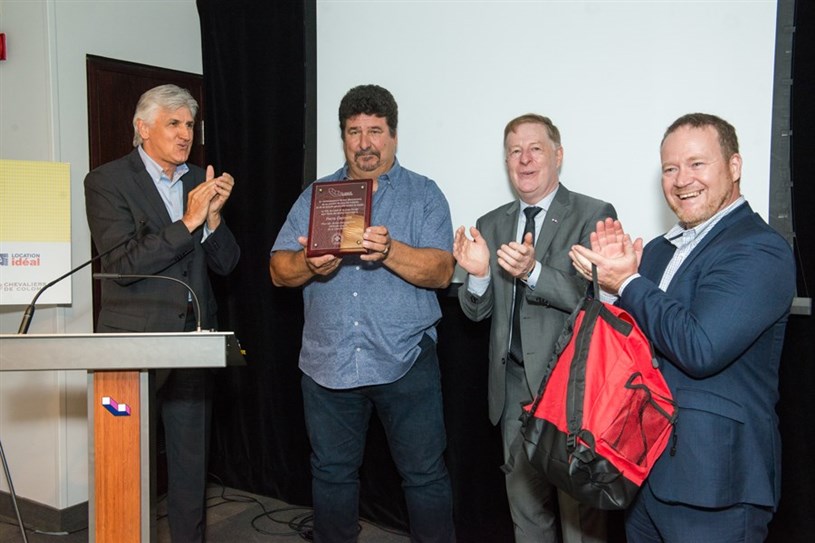 Employé du Service des travaux publics de la Ville de Laval depuis 36 ans et à l’aube de sa retraite, Pierre Clermont s’implique dans la campagne Croix-Rouge depuis 18 ans. La Croix-Rouge et la Ville de Laval ont donc saisi l’occasion pour lui rendre hommage pour toutes ces années de soutien. En signe de reconnaissance, une plaque honorifique lui a été remise des mains de Marc Demers, Pascal Mathieu et François-Henri Dugas, assistant-directeur du Service des travaux publics.