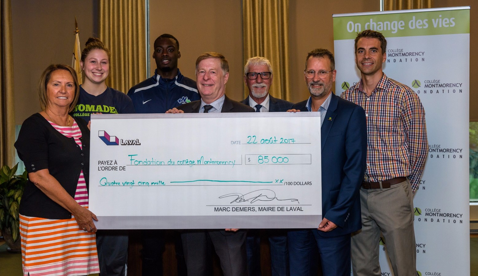 Le maire de Laval, Marc Demers, remettait ce matin une subvention de 85 000 $ à la Fondation du Collège Montmorency. La Ville de Laval profite de la campagne de levée de fonds actuelle du collège pour démontrer son appui à la persévérance et l’excellence des étudiants de l’établissement.
