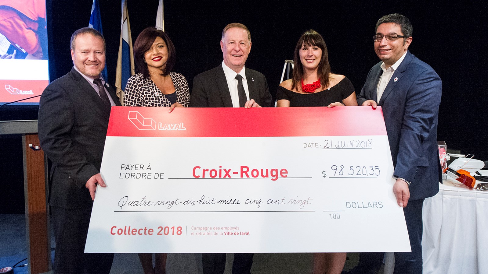 Les employés et retraités de la Ville de Laval ont remis un chèque de 98 520,35 $ à la Croix-Rouge lors de l’événement de clôture de leur 30e campagne en milieu de travail, dépassant, encore une fois, leur objectif initial.