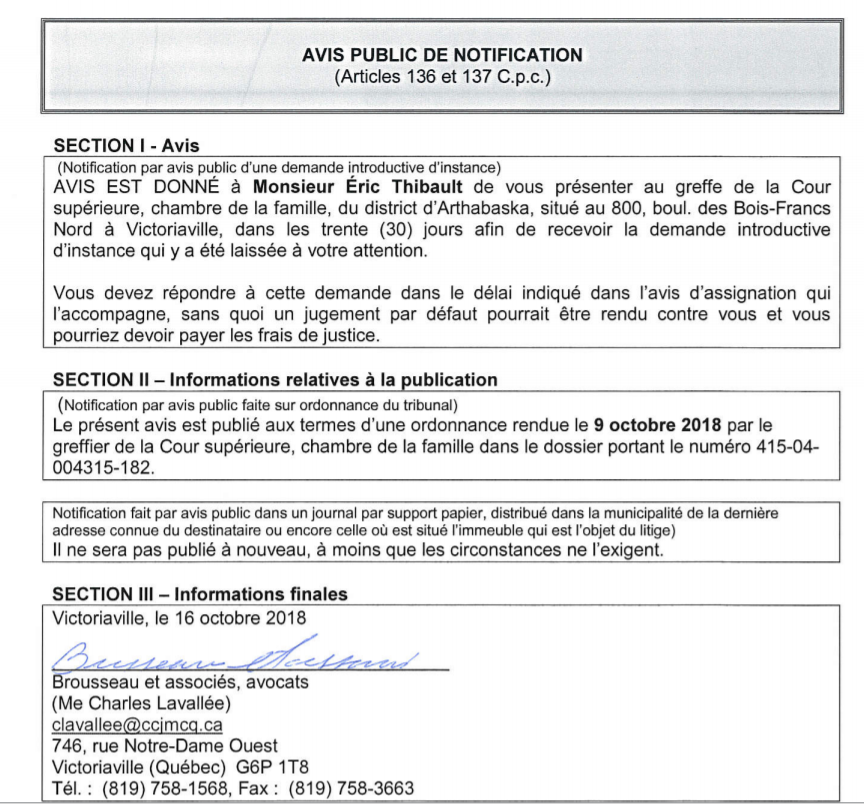 Avis public de notification